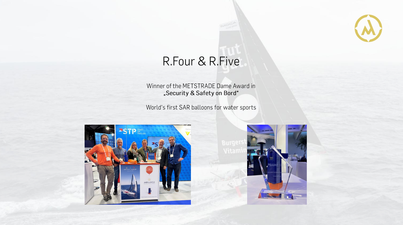 Il sistema è stato ampiamente testato e revisionato da esperti. Dal punto di vista tecnico, R.Four/R.Five si basa sul modello R.One, che è già stato introdotto con successo nel settore outdoor. Prima del suo lancio sul mercato, AirMarker ha superato rigorosi test di laboratorio e test sul campo in condizioni estreme. Inoltre, AirMarker gode del supporto degli esperti: alla fiera nautica internazionale METS, AirMarker R.Four ha vinto il primo premio nella categoria ‘Safety on Board’ — come primo prodotto di una start-up in assoluto.