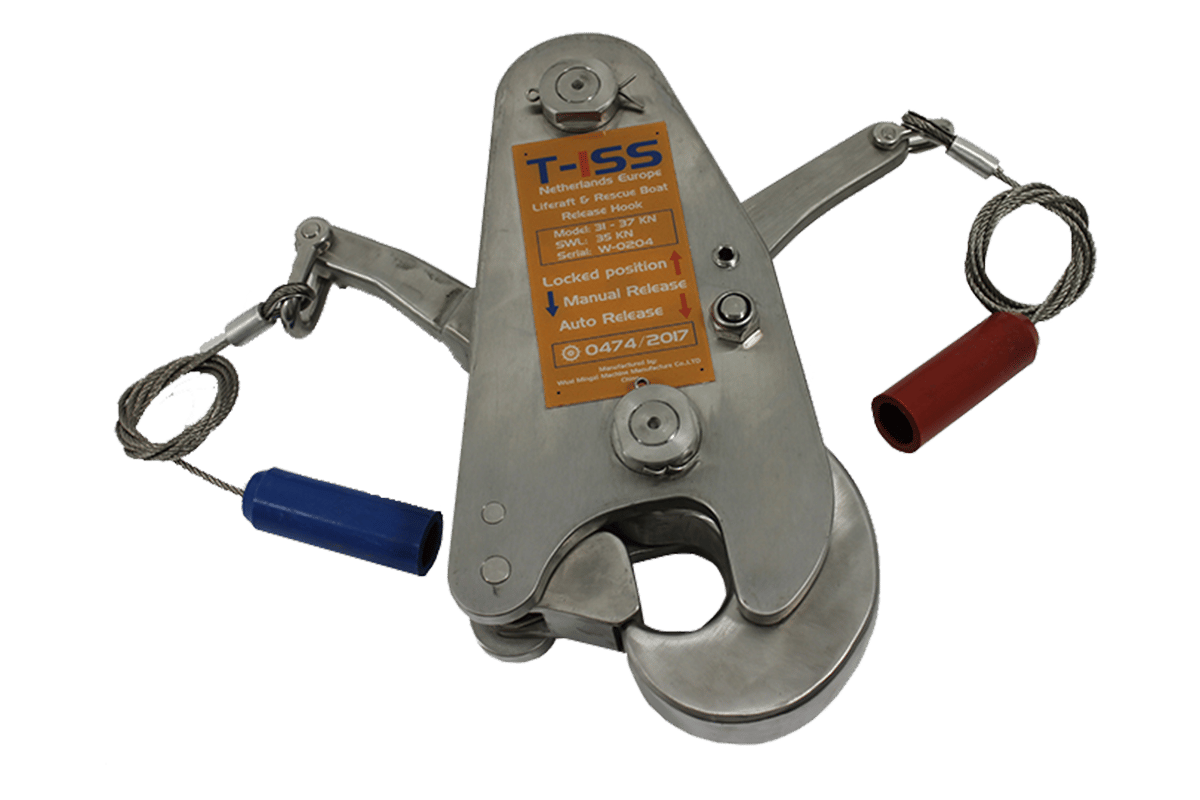 Sale and inspection of hooks that allow the quick release of rescue boats, launchable rafts, and lifeboats.
